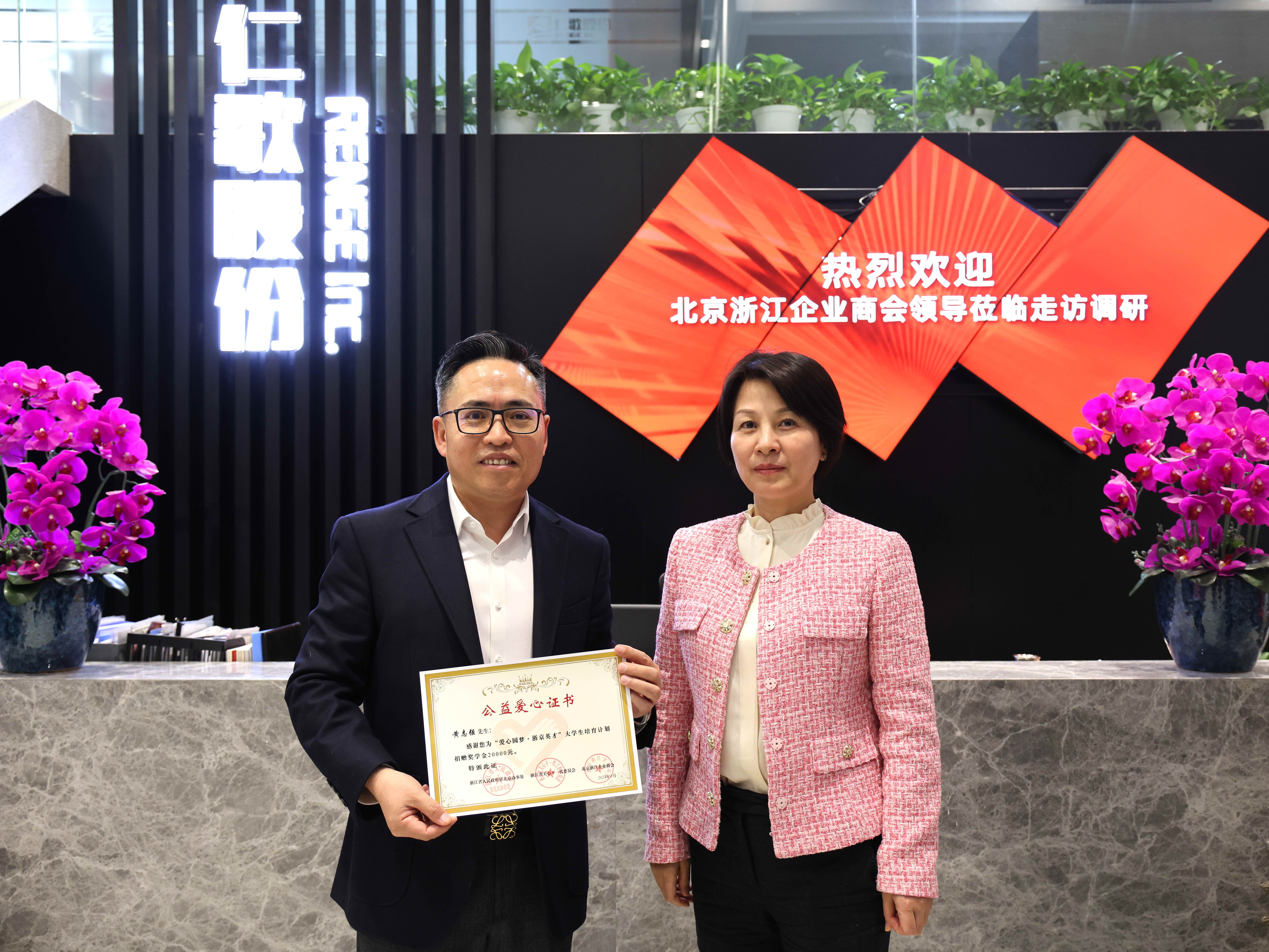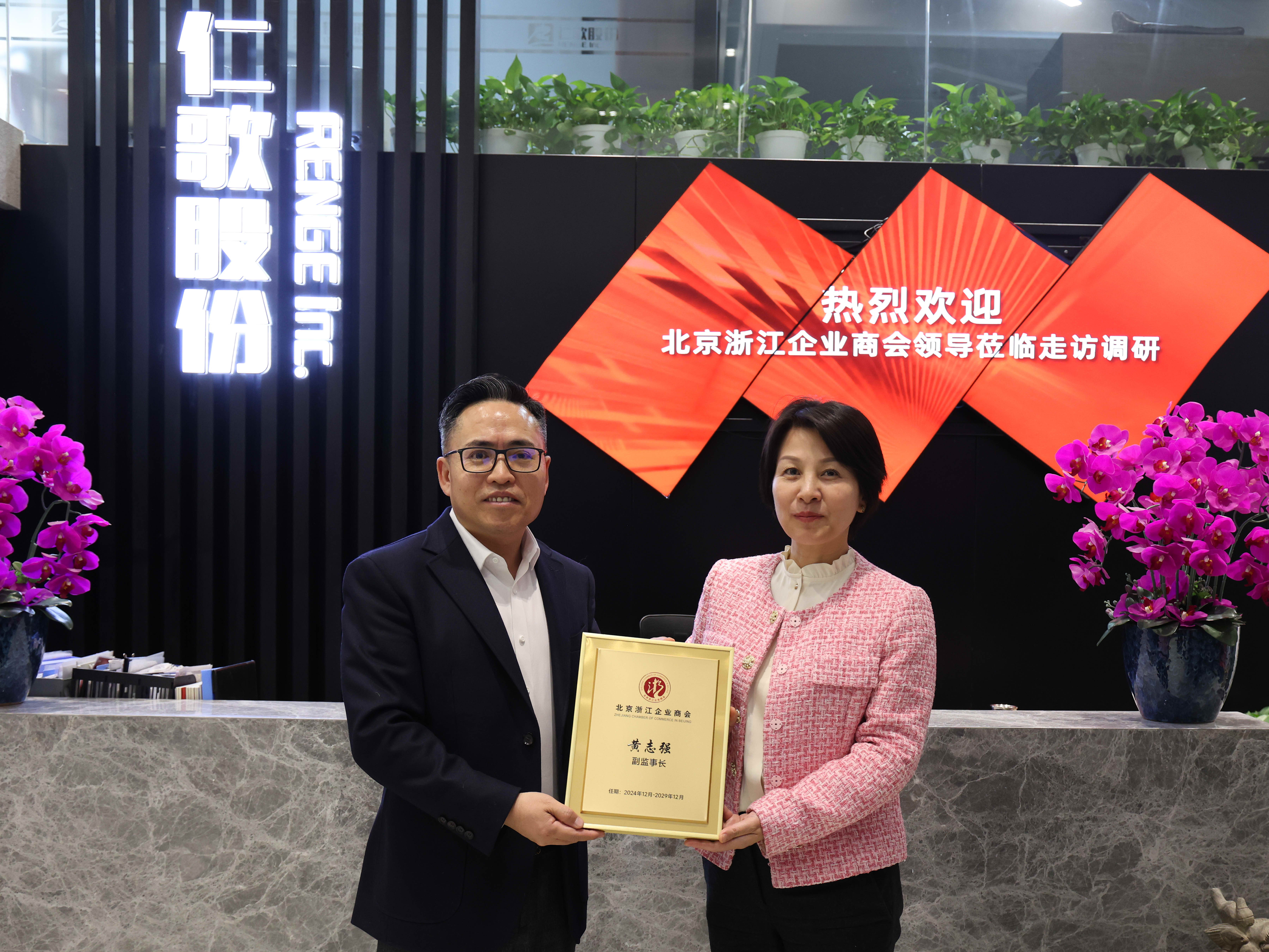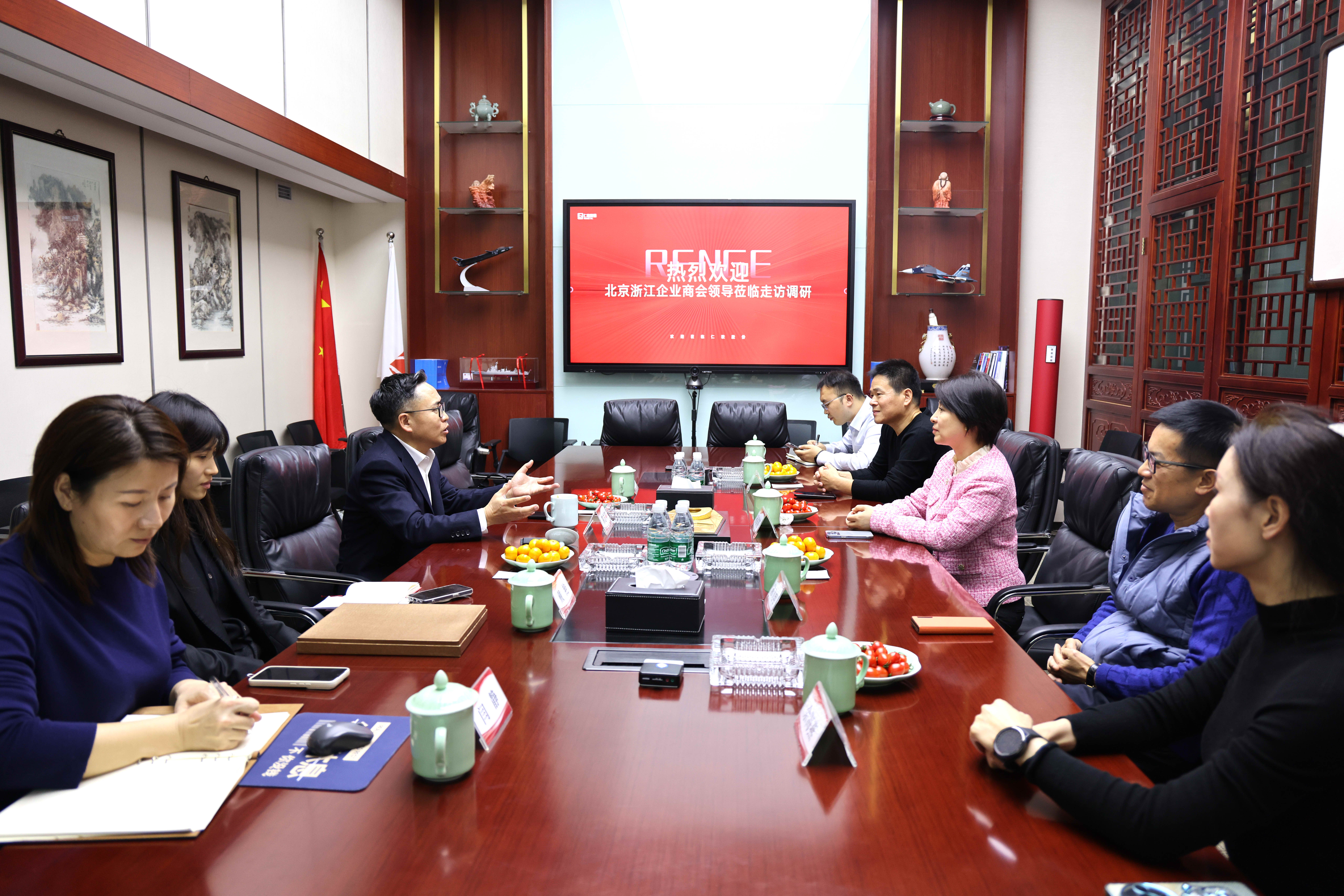 3月14日,北京浙江企業(yè)商會秘書長孫國英、副會長陳飛翔、夏臘放,理事余海燕,副會長單位財(cái)通證券股份有限公司北京分公司劉博偉一行走訪副監(jiān)事長單位北京仁歌科技股份有限公司,深入了解會員企業(yè)經(jīng)營狀況,探討合作機(jī)會,共謀高質(zhì)量發(fā)展。