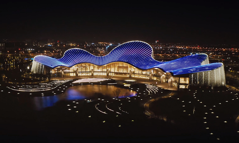 南通大劇院是已故國際級(jí)建筑大師保羅·安德魯在中國的封筆之作,設(shè)計(jì)理念為“琴山珠水”, 建筑造型酷似協(xié)奏的鋼琴。該項(xiàng)目總建筑面積11.1萬平方米,由1532座歌劇院,1184座音樂廳、591座戲劇場(chǎng)、406座多功能廳和小型兒童劇場(chǎng)等用房組成。